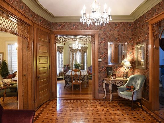 The above description and details are for the Main house and the Owner's Quarters.The two second floor bedrooms and the third floor bedrooms are two room suites with private baths, Owner's Quarters: (3 rooms) located on the 2nd floor rear. Access is from main house or private exterior stairs. Bedroom: 19X23, Kitchenette/Living room: 19X23, Bath: 11X20, Ceiling fans (3), Cooktop (2 burner), Refrigerator, Microwave. Property also includes the CARRIAGE HOUSE, constructed in 1900 and refurbished in 2003. This building is connected to the Main house by a covered portico. 1st floor includes: common areas, storage rooms, half bath, forced air gas furnace/AC, 3 ceiling fans, Swim Spa. 2nd floor consists of the East & West Suites, each 2/private baths. Forced air gas furnace/AC, tankless wtr htr