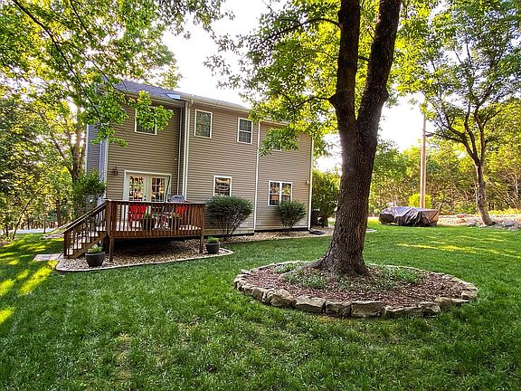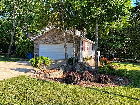 Table Rock Lake home in Ridgedale, MO close to Big Cedar Lodge. The house is across the street from Table Rock lakefront with a view of the shoreline under the trees, and more lake view in the winter. It would be fairly easy to add a fourth bedroom on the main level. 15 minute drive to Branson. It’s just a short walk to the Oakmont community boat launch and dock. The Oakmont community building on Hwy 86 has an indoor pool and hot tub, sauna, exercise equipment, playground, pavilion and more that is available for owners. Features: * Cambria quartz countertops in kitchen * Recently upgraded appliances and flooring * Separate family room (could be converted into a bedroom) * Separate upstairs/downstairs HVAC units * Screened-in porch * Playground, fire pit & waterfall in backyard * Corner lot