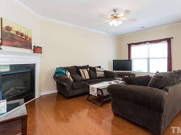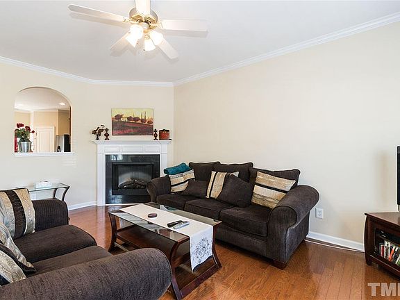 Wow! This one is gorgeous! Fantastic Location Near I-540/Morrisville Shopping/Dining. Hardwoods main floor, upgraded kitchen w/ 42"maple cabinets, diagonal tile backsplash, black appliances including smooth top stove & side by side refrigerator, recessed ltg, island, fireplace w/craftsman mantel. Mstr w/tray ceil & walk in closet. Mstr bath w/dual vanity, tile flrs, garden tub w/tiled surround, updated faucet/lighting/hardware. Plenty of storage, pool community! Patio w/ fenced yard. Separate laundry room