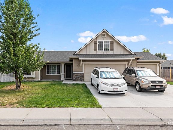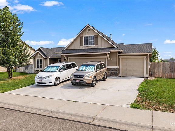 Originally designed as the Alaska floorplan, this outstanding single-level home features an additional upstairs bonus room and a split bedroom layout. Vaulted ceiling and ceiling fans in the living room. The kitchen is well-appointed with a breakfast bar, tile backsplash, smooth-top oven range, microwave, corner pantry, and a side-by-side stainless steel refrigerator. The master suite boasts vaulted ceilings, large walk-in closet and an oval soaking tub/shower combo. The home benefits from some newer interior and exterior paint. Situated on a spacious .21-acre lot, the property is fully fenced and equipped with full automatic sprinklers. Spacious oversized 3 car garage with painted walls. It is vacant and ready for immediate occupancy.