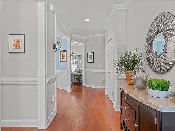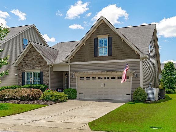 Charming ranch style home in the coveted pool community of Grays Creek! A light and bright entry highlights detailed molding and engineered hardwoods that span throughout the main living areas. The formal dining room is elegant and spacious for an array of table options. An open concept floorplan links the vaulted family room with an eat-in kitchen for an ideal hosting atmosphere. The gas log fireplace creates a warm and inviting setting while the kitchen gives a timeless design of white cabinetry, granite countertops, gas stove, Stainless Steel appliances and pantry for added storage. There are two bedrooms, both with full baths, on the first floor. One being the primary suite that boasts a vaulted ceiling, dual vanity sink, separate soaking tub, tiled step-in shower and walk-in closet. The second floor offers a versatile bonus room/3rd bedroom with a full bathroom! Adjacent to the bonus is 561 sqft of floored attic space which is left to be finished for future expansion. Relax outside on the back patio overlooking the gorgeous landscaping and hardwood trees that create a private park-like setting. Grays Creek is a pool and playground community with close proximity to Downtown Fuquay Varina for boutique shopping, restaurants, breweries and more!