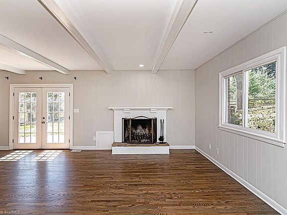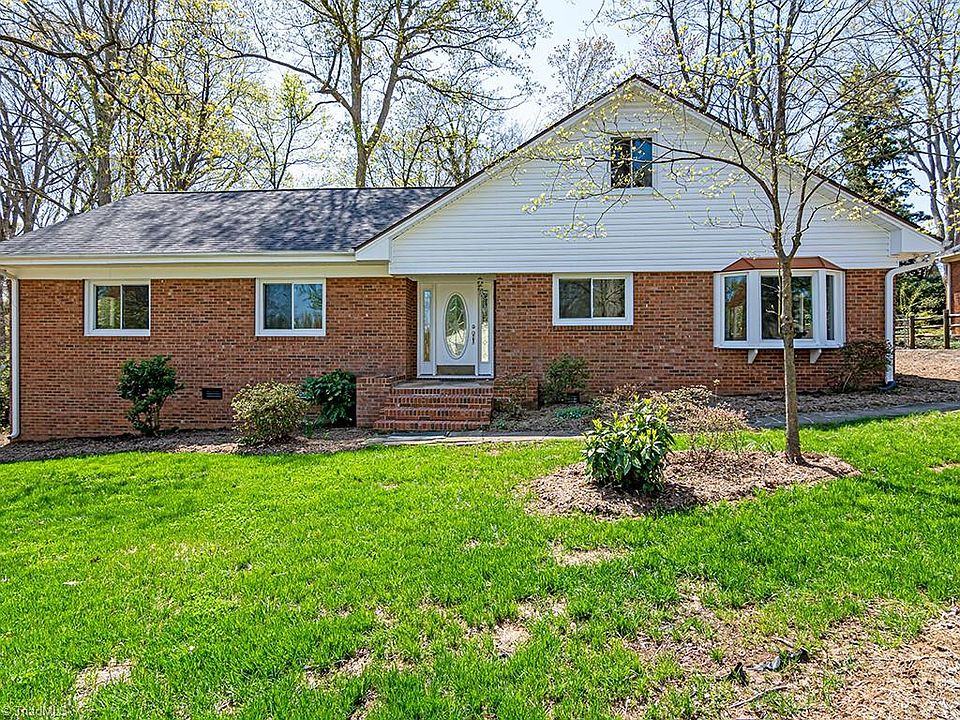 This brick home sits in a quaint neighborhood and is conveniently located close to shopping and highways. A wood fireplace in the living room and an outdoor wood grill on a stone patio. Custom Built-ins! Updates include a new roof in 2020, windows and HVAC in 2013, sidings update in 2016, flooring is updated with LVP. Freshly painted, granite countertops in the kitchen and new appliances! Great bonus room for additional space on the upper level- not all square footage accounted for due to ceiling height. (Heated and NOT cooled). All bedrooms are on main with backyard access through the primary bedroom. Lots of natural light and north-facing! Must see inside to appreciate all the space and amenities this Guilford College area home provides.