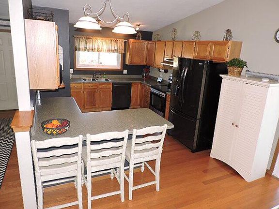 Fantastic 3 bedroom 2 bath home walkable to high school and in the Barrie Elementary district! This home offers hardwood flooring, kitchen island, open concept living, lots of natural lighting, vaulted ceiling, walk-out lower level family room. Newer kitchen appliances. Two sets of double closets in two of the bedrooms. Nice sized corner lot with main level walk-out to a large maintenance free deck. Also a 10 X 12 maintenance free storage shed with a loft (2019). Large 2.5 car attached garage plus plenty of basement storage. Water heater (2020), furnace (2017).