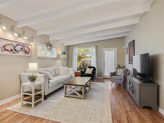 Adorable 4 bedroom, 2 bath brick home on corner 70x102 lot.. Looks new, with granite counters, stainless appliances, modern décor, no carpet, vaulted ceilings, and lots of natural light! Shored and remodeled in 2018 with elevation certificate. Beautiful flooring , energy efficient windows with warranty ,newer AC condenser and roof 2 years new. This home is surrounded by lots of natural beauty and is move-in ready! Dont miss the open house Sunday March 7, 2021 from 2 to 4 Pm