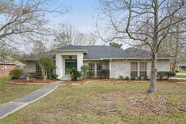 Lovely, well maintained one-story home in Mandeville Schools and just a few minutes to the Causeway Bridge. Open floor plan with great natural light. Spacious Greatroom offers Pergo Floors, 2 sets of French doors & pretty FP. Light & bright island Kit with skylight and gas cooktop. Large covered patio, beautiful backyard and corner lot with side-load dble garage. Wonderful master suite with dble vanities, sep shower, hydro tub & lg walk-in closet. Split bdrm plan. All hard floors; no carpet. Roof just 1 yr!