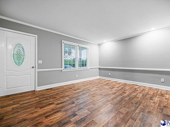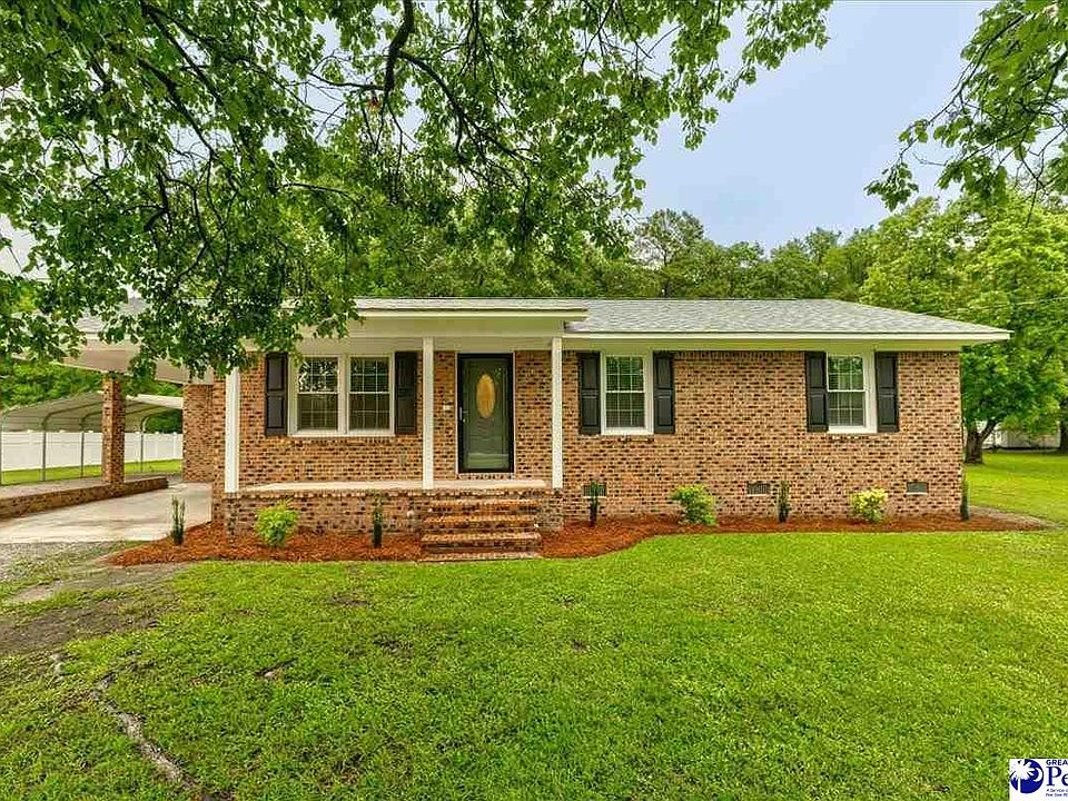 This home is located on a quiet street with a nice curb appeal Enter into a large Den/Family room. The kitchen and dining area has an open floor plan. A refrigerator, stove and dishwasher will be installed. Down the hallway is a full bathroom and three bedrooms in which the owner's bedroom has a private full bathroom. Newly renovated with vinyl windows, binds, and laminate flooring throughout the house. The carport has a storage area, and also gives easy access into the kitchen. In addition, there is a detached double carport for extra parking. Enjoy entertaining, family fun time or just relaxing in the sounds of nature in this large back yard. Extra storage is available in the outside storage building. Country living yet minutes from downtown Darlington, and Florence and Hartsville is 20 minutes away. Don't miss seeing this home. Schedule an appointment today to make this your home!!
