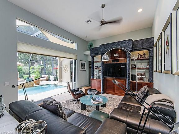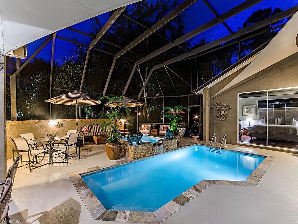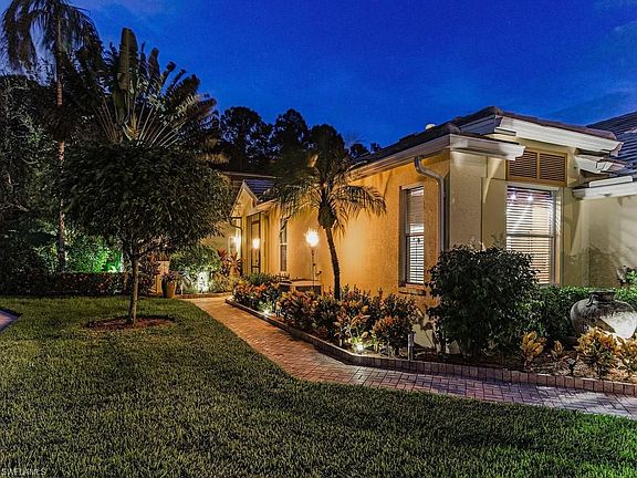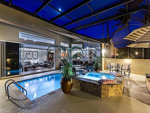 V.2361 Rarely available, magical, one-of-a-kind villa on an oversized lot within amenity rich community! Recent updates include expansion of lanai deck lounge area to include a privacy wall, a spill-over spa to the private pool plus an outdoor garden patio w/ mood setting firepit & grilling area overlooking a charming running creek & private wooded preserve beyond! Interior upgrades include kitchen, bath, interior & exterior paint, flooring plus garage custom cabinets and floor plus new systems. N Naples W of US 41 between popular Mercato & Coconut Pointe shopping, dining & movies. Includes Tarpon Cove Yacht and Racquet Club membership w/ waterfront dining, large pool w/ chickee bar, 3 community geo-thermal pools, golf reciprocity, boat docks plus a boat shuttle to Delanor Wiggins Park Beach!