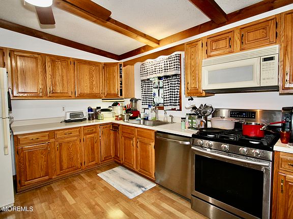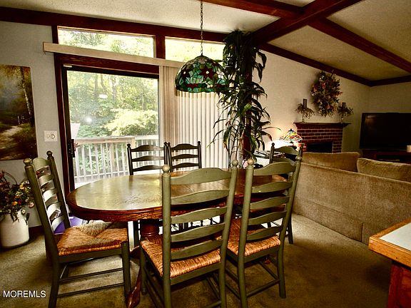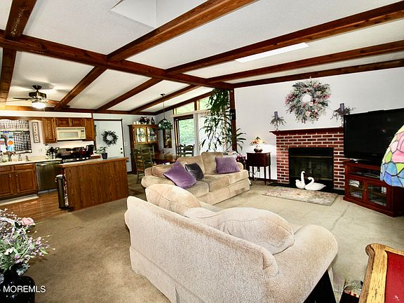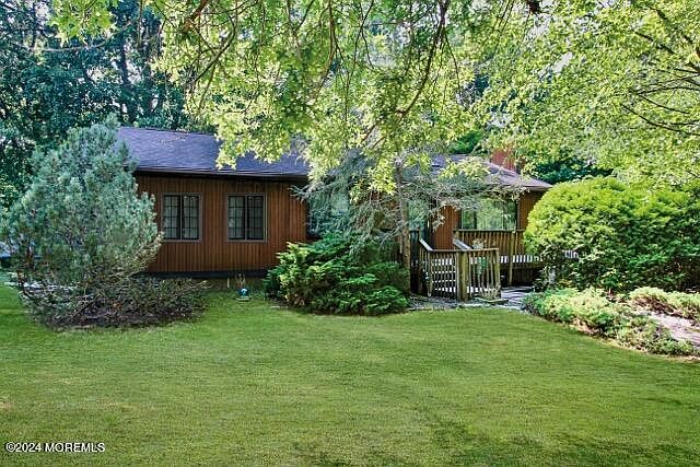 Whimsical Ranch surrounded by woods and nature. Open Great room - Living, Dining & Kitchen with vaulted ceiling and work island. Sliders to the expansive deck overlook the peaceful wooded privacy and yard. 3 bdrms, Primary Bdrm with ensuite full bath. SQ Footage does not include the Full basement with Family Room, Work Room, Storage Room. Convenient laundry shoot from main bath to Laundry Room. Sliders from the lower level make easy access to the Detached 2 car garage- a car buff or contractor's dream. Air Condition compressor and the Predator 1000 generator are only 2 years old. Minutes to all the Jersey Shore has to offer.(Photos have been enhanced to provide better room views)