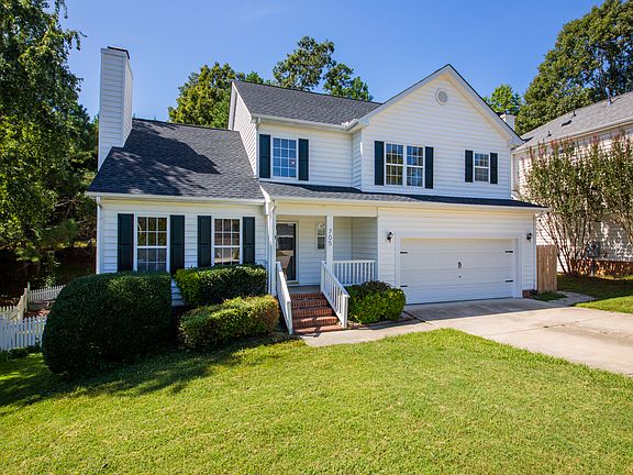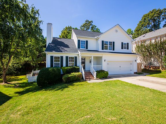 Wonderful Apex home on a cul-de-sac lot! You'll love the open floor plan with beautiful hardwood floors and vaulted ceiling in the family room. Extra space and tons natural light in the sun room. Upstairs, you'll find 3 spacious bedrooms including a master suite with walk-in closet. Relax outdoors with a custom deck, fenced-in backyard, and bridge over a small pond. Walking distance to Apex Jaycee Park, offering walking trails, a playground, and more!