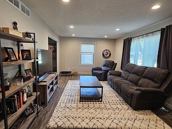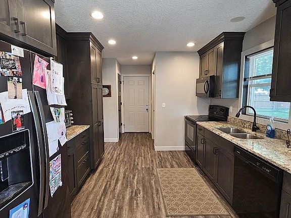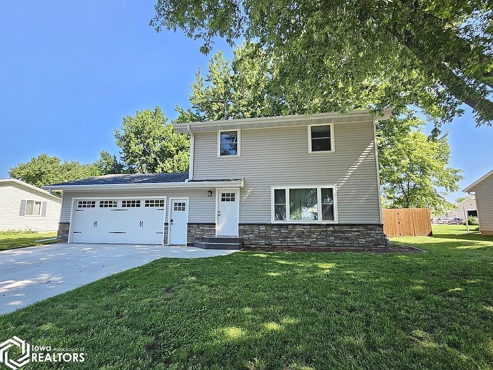 This charming home located just a block and half from the Leonard Fjelstad activity field has been updated with meticulous attention to the details over the last 3 years! The exterior of this home boasts vinyl siding w/gorgeous brick detail in the front, new windows, new garage floor and driveway, and a brand new privacy fence in the backyard! Upon entering the home from the double attached garage, you can find a half bath located on one side and then enter in through the galley-style kitchen. The kitchen features custom cabinetry, granite countertops, appliances, and overlooks a stylish wood accent wall on the dining room side. This kitchen is truly the heart of this home, perfect for entertaining. The entire main level has luxury vinyl plank flooring & the open layout allows for easy flow into the dining area and living room. You can also step outside through the sliding doors to enjoy the fenced-in backyard. The upper level is made up of three bedrooms and a full bath, all with beautiful dark grey doors and modern carpet. Don't miss out on this BEAUTY!