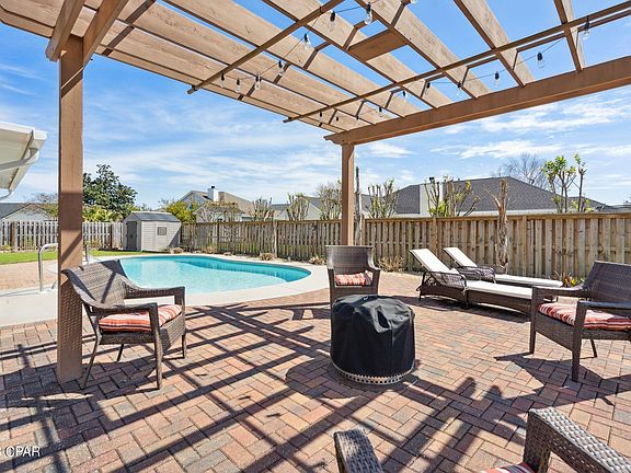 CURRENTLY UNDER CONTRACT, SELLER WILL CONSIDER BACKUP OFFERS. An immaculate 4 bedroom 3 full bath home with 2400 square feet, split floor plan, formal dining room, family room with gas fireplace, large screened-in patio overlooking a gorgeous in-ground gunite swimming pool with large deck, gazebo, and well-maintained yard with well-established landscaping. The home is on a cul-de-sac and is located in one of the most sought after subdivisions in Bay County, Northshore. The kitchen has large breakfast room and breakfast bar, stainless appliances, large pantry and lots of counter and cabinet space. The master suite is spacious with his and her walk-in closets, large jacuzzi tub, separate shower and double vanity. There are two large bedrooms and a full bath on the other side of the home. Both of these bedrooms have custom cabinetry in the closets. One of the bedrooms has a large storage closet inside the room (under the stairs) but is easily accessible. Upstairs in another bedroom that is perfect for guest room, playroom, study or media room. This bedroom also has a large closet and a full bathroom with shower only. There is a HUGE BONUS ATTIC STORAGE AREA located inside this room for easy access. Outside you will find a immaculate garage with workbench and additional shelving. The home has a sprinkler system and is on an annual termite bond. THE SELLER IS LEAVING A WHOLE-HOUSE GENERATOR as part of the home and it is directly connected in case of loss of power. There is additional parking on the side of the home for a boat, RV or other watercraft. There are no HOA fees in this subdivision and all of the homes are very well maintained with sidewalks throughout. THIS HOME IS NOT IN A FLOOD ZONE.