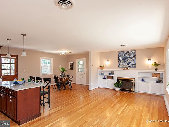Amazing in town opportunity. Spacious all Brick Rancher with covered front porch over looking Jefferson Memorial Park, Walking Path, Tennis Courts and Pool! TWO garages. Two Drive Ways. Rear access with huge flat concrete and asphalt driveway. Gravel pad for parking trailer or RV. Brand New Fenced in rear yard. Small fish pond. Paver Patio. Open airy floor plan on the main level with Hardwood Floors. Kitchen has a huge island. Granite Counter Tops, Pendant Lighting. Adjoining great room has beautiful built-ins and wood burning fireplace and a huge bay window looking out on the park. Master Bedroom has walk in closet and private master bath with double vanity, tub and separate shower. All 3 bedrooms are on the main living level and all have hardwood floors. Oak stair case leads to finished lower level which includes an awesome recreation room with wood-buring fireplace with huge brick hearth. Additional bedroom with walk up exterior egress and a 3rd full bathroom. There is an unfinished storage room and a 2nd garage.