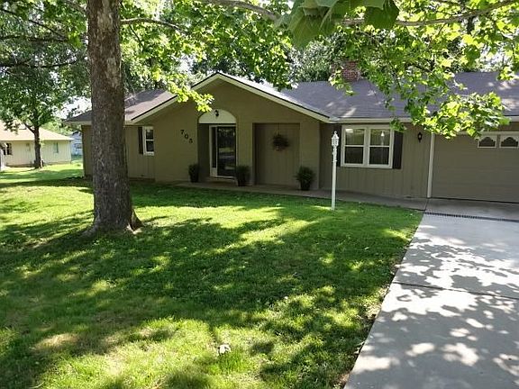 If you are looking for a move-in ready and nicely updated ranch on a beautiful treed lot, this is it! Freshly painted exterior, new deck, new hardwood floors, built-in bookcases and TV cabinet. Large laundry, huge kitchen dining with sitting area and both bathrooms have been completely redone. Also includes a partial unfinished basement that is perfect for a workshop, john deere room or storage. Great Ozark location that is close to everything.