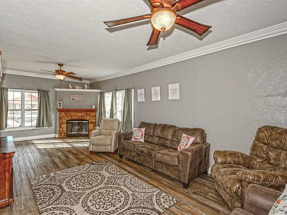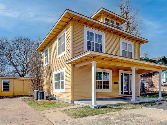 Beautifully remodeled two-story house with a fireplace. The entryway flows into a large living room, and the kitchen/dining connects to an open deck. The house has a great layout for holidays and entertaining. There is a massive walk-in closet in the primary bedroom upstairs, plus bathrooms on both floors. New roof and tons of upgrades last year! The laundry room is upstairs, and the new washer and dryer are staying with the property. The large shed could act as a workshop, garage, man cave, and much more. Enjoy 1800 sq ft of possibilities at an affordable price with this house for sale in Frederick, OK.