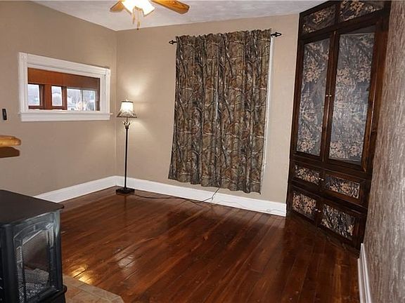 Outstanding 2 sty home in Apollo near the football field offer 3 bedrooms and 1 1/2 baths on a nice lot with fenced in yard and 3 off street parking. Newer metal roof installed in 2017 and both bathrooms were remodeled. There is a nice closed in porch with lots of windows and carpet. Stunning hardwood flooring throughout. Living room offers a built in cabinet and a wood burner. There is also another room on the main level that could be a family room. There is a dining room with historical built-in cabinet and is adjacent to the kitchen. The kitchen has nice cabinet and counter and comes with the electric stove and refrigerator. There is an exit door with decorative glass that goes out to a covered back porch and fenced in yard. Off of the kitchen is a half bath. Nice size bedrooms on the 2nd floor with a Jack and Jill full bathroom with corner shower. There is a full set of stairs to an attic for great storage or finish to additional space.