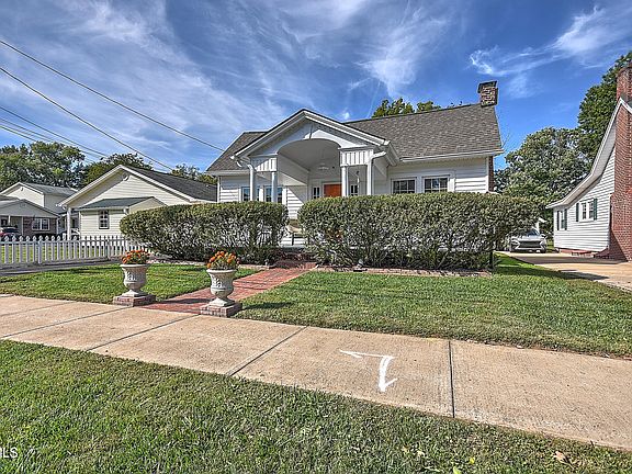 This beautiful home on the Doe River has been wonderfully updated and maintained. Hardwood floor and tile throughout the house, a fireplace with built in bookshelves, french doors, and a stately covered front porch makes this house truly stand out. All updated appliances convey in a kitchen that was renovated in 2019. A new roof was installed in 2020, and new electrical wiring and a completely new HVAC system was installed in 2024. Relax around the natural gas log set in the fireplace in the upcoming colder months. Situated on a dead end street just one block from all that downtown Elizabethton has to offer, the private backyard is unbeatable with fantastic views of the river.
