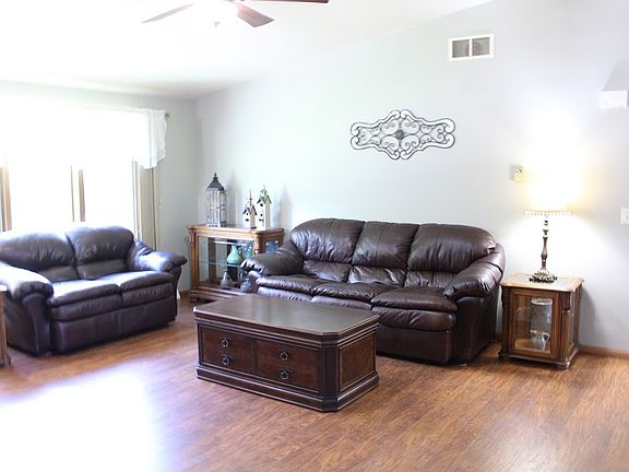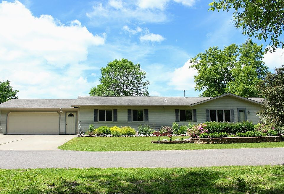 Beautiful home, giving you an in-town location with a view of woods out the front and back is a large brick patio, beautiful flower gardens and yard space all within the privacy fenced back yard. Kitchen has granite countertops, marble flooring, stove, (gas hook up for stove is there if you prefer gas), refrigerator, microwave and dishwasher, garbage disposal, pantry, an island and patio doors to the back yard giving you a great view from the kitchen table. Master suite offers walk in closet, large master bath including a separate vanity area. Durable high-grade laminate flooring in the bedroom and walk in closet. The master bath has travertine tiles for the flooring and in the shower area with a glass block surround on the over-sized shower. Living room, family room, and office - with built in desk area all have the same beautiful and durable high-grade laminate flooring as the master suite. There are 3 more bedroom, a full bath, separate laundry room with front load washer and dryer and entry into the attached garage. The attached 2 plus garage has a rear garage door to allow you to drive through to the rear detached garage. This well-maintained home offers all this on the main level. The basement level has a large fully finished room with a small kitchen area, complete with stove and refrigerator, family/recreation room, gas fireplace, bathroom and bonus room. Along with a large utility, workroom and storage area. The finished area in this home gives you more than 3000 sq ft of living area. This home is definitely worth seeing.