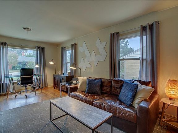 Are you looking for a house with the right updates and central location in OKC? Look no further than this house in Wileman addition. Great curb appeal with mature landscaping and large oak tree in the front yard. The living room is very spacious, with a great picture window looking out onto the front yard. The kitchen has been updated with newer appliances, granite counter tops, tumbled marble back splash, under cabinet lighting, updated cabinets and tile floor. The formal dining room is also spacious and has a newer modern light fixture. All bedrooms are great size and include good size closets. The bathroom has the original 1950's tile with an updated sink and vanity top. The hallway has the original built-in bookcase and a laundry for stackable washer and dryer. All hardwood floors throughout the house. The home includes Nest home monitoring and Nest thermostat. Newer double pane windows throughout the house.The backyard is like your own park with mature landscaping and trees.