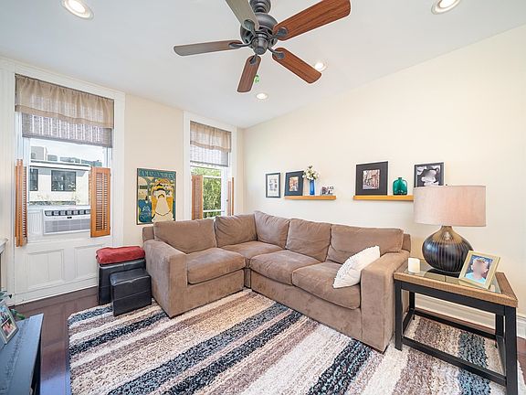 A true Hoboken home located in the heart of midtown nestled on a tree lined street known as Park Avenue. This is an amazing space that offers 6 rooms featuring 2 bedrooms, an office/den, a dining room, living room and kitchen. With nearly 1000sqft of living space in this stately Hoboken row home this is the first time that this unit has been available to welcome its new owners. Spacious East facing living room with exposed brick, high ceilings, recessed light and two large windows which allow for morning sunshine. Kitchen sits right off the living room; enjoy your coffee in the morning sunlight with Eastern exposure in a kitchen that offers plenty of cabinet space, a stainless steel appliance package, granite countertops and tumbled marble backsplash. Entertaining? There is a separate dining room with beautiful original pocket doors-original crown and base molding set against polished hardwood floors. Large yet cozy primary bedroom with bow windows, whitewashed exposed brick, original wide plank wood floors and molding to complete this space. A dedicated home office/den makes working from home a pleasure. In addition, there is another bedroom off the primary that can be converted to whatever your needs may be. There is an abundance of charm in this home. Enjoy in home laundry, a recently renovated full bath and a floor plan that can be customized to your preferences. 705 Park offers a lovely common backyard for your enjoyment and additional storage. Don’t miss this opportunity to live in one of Hoboken’s best locations with easy access to transportation, shops, restaurants and parks.