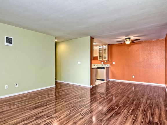 Fantastic 1 bedroom starter condo at Sunbow Villas! Built in 2000, this lower level unit is in excellent condition with community amenities that include pool & hot tub, playground, and BBQs. Enjoy a covered patio with Washer/Dryer in closet. Attractive finishes include granite counters in kitchen & bathroom, shaker cabinets, and rich laminate floors. Low HOAs cover water, trash, sewer. Comes with 1 carport parking space & a parking permit for guests. Close to freeways, shopping, parks, & medical center.