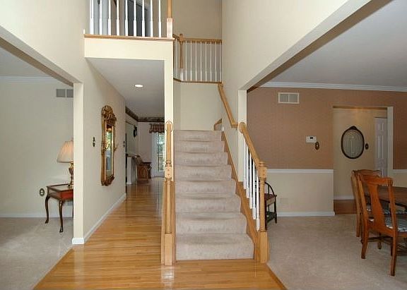 Wow! Gorgeous hardwood flooring, 2 story foyer, chair rail, crown molding, neutral throughout. 1st floor office, cooks' delight kitchen, grand master suite.Private deck overlooking a wooded lot. Four bedrooms, 2+1 baths and a 2 car attached garage.