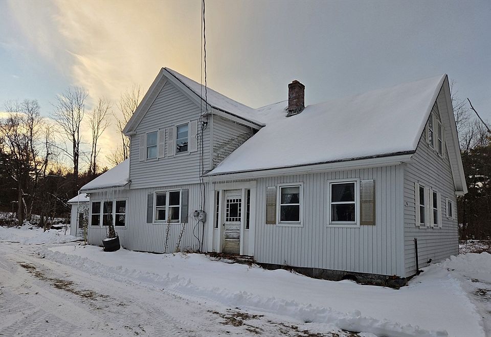 Full of character and ready for new life, this antique farmhouse offers endless potential on a beautiful country lot. The large eat-in kitchen serves as the heart of the home, while the cozy living room with a wood stove adds warmth for the winter months. A dining room with exposed beams provides rustic appeal and easy access to the outdoors, complemented by a bright sun room connecting to both the kitchen and yard. With three bedrooms, a laundry room, and a sauna with a shower, there’s space and comfort throughout. The oversized attached garage offers plenty of room for storage, projects, or a workshop. Outside, enjoy the field-like backyard with mature blueberry bushes. Bring your ideas and make this timeless farmhouse shine again!