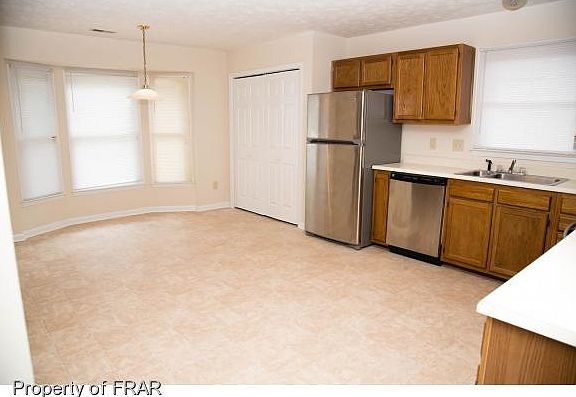 Freshly painted exterior. Located in Middle Creek subdivision. $109,000 3BR/2BA w/over 1500 sq ft. Fantastic with convenient location close to shopping, restaurants & less than 10 min to Ft. Bragg. Large great room w/wood burning fireplace. Spacious eat-in kitchen w/island, large pantry & bay window. Stainless Steel Appliances, Large master w/WIC. Fenced backyard.