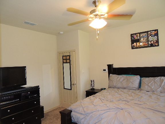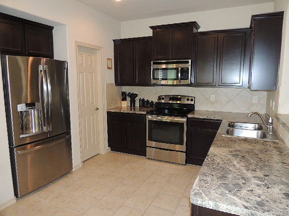 Newer home built by DR Horton with energy efficiencies in mind. Enjoy a covered patio with an oversized backyard that's fully fenced with sprinkler system. Open floorplan with large living area & split bedroom arrangement. Lots of counter space in the kitchen with custom cabinets, stainless appliances, walk-in pantry & eat-in breakfast area with tile flooring. Private master & bath features separate shower, garden tub & dual vanity.