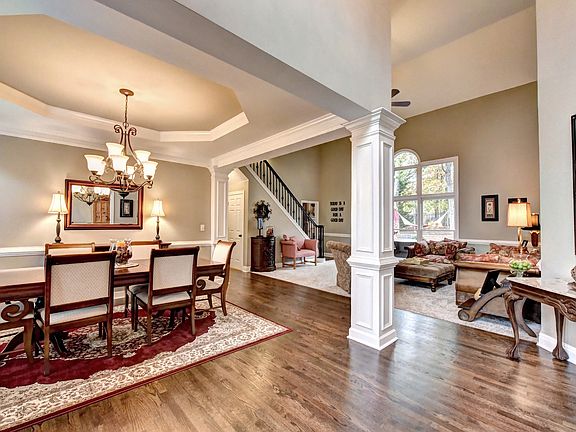 - Interior: 2-Story Foyer, Double Vnty Other, Entrance Foyer, Trey Ceilings, Wall/Wall Carpet, 9 ft + Ceil Main, Disp Attic Stairs, 10 ft + Ceil Lower