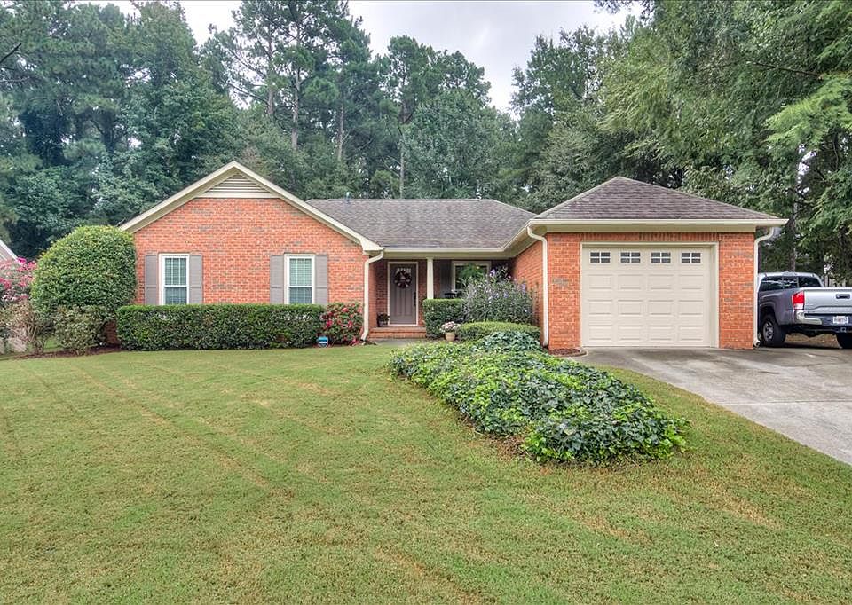 WOW! Under $200K Brick Ranch with Garage in Evans in Columbia Co! Well Maintained Home with Open Plan! Great curb appeal with lush grass and rocking chair front porch! BIG feature is the beautiful landscaping and HUGE private backyard - room for a pool! Built in 2019 a 24' x 18' custom deck - PLENTY of room for Entertaining Family and Friends and having cookouts! Greatroom with woodburning Fireplace! Informal Dining area! Neutral colors throughout! Buyers will love the view from the Fabulous Kitchen and Breakfast Room Bay Window of the pretty backyard full of blooming plants, play area, storage bldg and PRIVACY~ Kitchen is light and bright with SS Frig and smooth top stove, plenty of cabinets and countertops. Laundry near kitchen. Spacious Master Bedroom 17 x 13 with walk-in closet! Bathroom has a separate vanity and garden tub! Two additional spacious bedrooms with lots of closet space. All Bedrooms are carpeted. Hall Bath as double sinks! NO HOA! Location!!