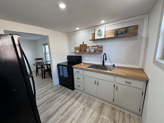 Welcome home to this newly renovated corner lot property in the heart of Elwood. The main home features 2 bedrooms and 1 full bathroom. Luxury vinyl plank flooring throughout the home, sconce lighting in the living room and one of the bedrooms and beautifully tiled backsplash in the kitchen. Ample storage space in the basement. Step outside the back door to a fully fenced in backyard just steps away from the pole barn that is included in the sale. Pole barn is large enough to store an RV and much more. Pole barn is 40x60 with 16' ceiling. Come see for yourself all this property has to offer!