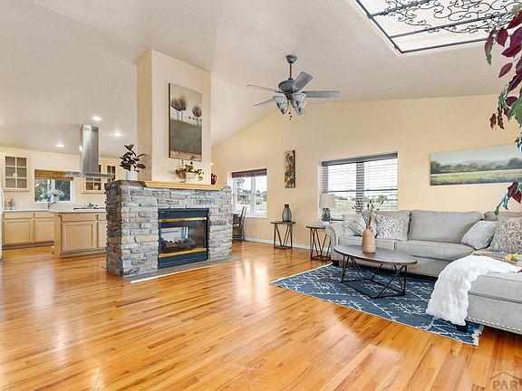 LOCATION , LOCATION, LOCATION!!!! This generous ranch home offers privacy at its best! The main lever shares a well-lit open floor plan with the en suite master bedroom that features an amazing soaking tub along with a walk-closet. The main level also walk sinto the laundry and garage. This well though out kitchen offers a great view from the kithen sink and a wonderful open space from the living room direction--GREAT for entertaining or just enjoying your home from the kitchen area. The basement is completely finished with an excellent layout, including a private bedroom and bathroom, a theater area, a wet bar, a gaming area. (The very nice pool table and accessories are for sale). Something special about the construction of this property is the walls are made of insulated block reinforced by concrete and rebar. The construction saves a lot on heating and cooling! This property stays nice and warm in the winter and cool in the summer. The spacious oversized lot offers beautiful views that include, Greenhorn Mtns, Wet Mountains, and Pikes Peak. The sunrises and sunsets are awesome! Schedule your viewing today! LOCATION, LOCATION, LOCATION!