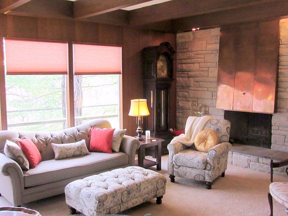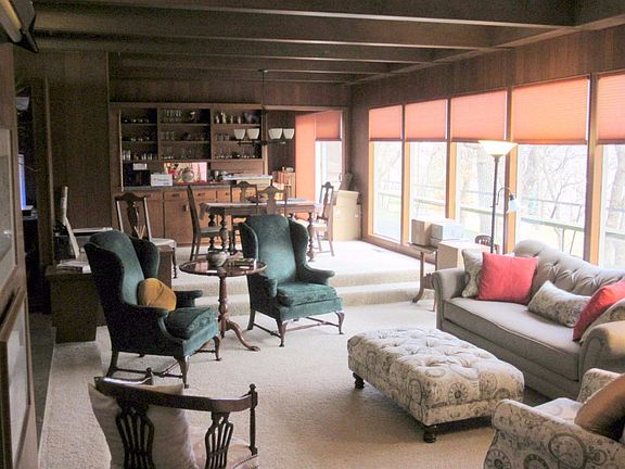Not like any other! Unique in character and designed architecturally by original owners to follow Frank Lloyd Wright ideas. Beautiful open floor plan with many floor to ceiling windows offering natural light throughout the home. Spacious foyer entry w/slate floors, open staircase leading to the sunken living room and breathtaking views. This home offers 3 bedrooms, 2 1/2 baths, Library, LL Family Room and more! So many features you will not find in other homes! The Kitchen has an island, updated Quartz counter top and very good working space. Spacious pantry, updated lighting and hardwood floors. You will love the many built-ins and the storage in this home. This property offers an ample yard with mature oak trees, newly landscaped front w/limestone path and 2 raised floral beds. This property has been well maintained-w/recent reconstruction of the original Greenhouse that is heated and updates on the mechanics. Appliances are negotiable. This is a home to see!