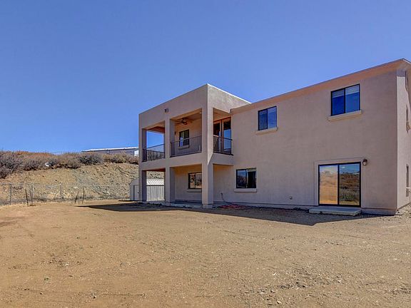 Contemporary raised ranch with rustic touches and walkout lower level, privately located on 5+ acres in a natural setting surrounded on three sides by federal BLM land. The unusual property layout provides an area for the house, and a separate area currently used for horse corrals, including 2-3 partially enclosed stalls and a Weather King shed with attached porch being used for hay storage, tack, and accessories. A slice of the property gives access to the south, over a wash and up the hillside of chaparral vegetation and easy access to over 100 acres of BLM land for hiking, sightseeing, and horseback riding. There are two covered structures here that were used for hay storage and cattle, and plenty of room for additional corrals or round pen. Water is available here and at the horse corrals. Drive on a shared country lane onto a large concrete pad leading up to a two-car attached garage with opener and a detached 400 sq ft garage/workshop, both with 10’+ ceilings for overhead storage, electricity, and garage door openers. On your way to the front door, enjoy the Jacuzzi hot tub in the front yard, great for star gazing or views all the way to Mingus Mountain, then step up on a newer Trex deck with panoramic views and a grill with gas hookup. Step inside this 2,961 sq ft home and find a great room including an open living/dining/kitchen area with 9 ft ceilings, ceramic tile, porcelain wood-look tile, wood doors and trim, and solar shades/blinds. There is a half bath, coat closet and double glass paned wood doors leading out to a tiled covered porch. The main level master suite has access to the porch as well, wood-look tile, barn doors into a full bath and large WIC. The kitchen has granite countertops, ample cabinets, large walk-in pantry, newer black stainless appliances, and an extra counter/workspace on one side. Take the carpeted stairs down to a full walkout lower level including a large family/bonus room with a slider to the back yard, three bedrooms (one with a separate entry, one with a large double closet, and one with a WIC), full bath, and separate laundry room. All flooring is ceramic tile and porcelain wood-look tile except for the mechanical room. Out the slider you will find a patio and walkway to the newly installed above ground pool with 2 speed pump and solar cover, and a raised Trex deck, pastoral and mountain views, and a garden with trees and flowering plants. There are grape vines at the south end of the house, a large cement patio behind the garage/workshop, and another shed and a garden room near the pool area. Home has two heat pumps, one for each of the lower and upper levels, central air, ceiling fans, tankless gas water heater, 7gpm well and Kinetico water softener. There is easy access to and additional parking at the lower level. A private retreat, yet 15min to Prescott Valley and an hour to north Phoenix! (Current photos are over 4 years old and do not represent upgrades.)