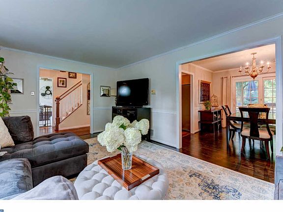Beautiful 4 Bedroom, 1.5 bath Colonial located in the desirable Pennsbury School District. Enter into a recently updated foyer which includes custom wainscoting, hardwood floor and new stairway banister and railing. The large eat-in Kitchen features custom concrete counters, stainless steel appliances, hard wood flooring and a subway tile back splash. Enjoy entertaining in the spacious dining room which features crown molding and glass doors that lead to spacious backyard deck. The laundry Room/Mud Room also opens to the expansive backyard and features a brand new Samsung washer and dryer. The family room has crown molding and a beautiful large front window that brings in plenty of natural light and has tons of space for entertaining. The den features built in book shelves and newer carpeting. The downstairs bath has been recently remodeled to include marble penny tile flooring, wainscoting with eco friendly toilet and pedestal sink. Upstairs is where you will find 4 bedrooms and a large bath with double sink vanity. The second floor also features custom wainscoting and new carpeting! Additional bonuses to this home are a large unfinished basement, large garage with loft space and pull down ceiling access to the attic which offers plenty of storage options.