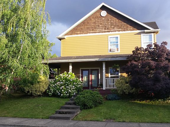 Classic & tasteful home with a wrap around porch. Open banister staircase, 2-story entry, oak hardwood flooring, formal dining room w/wainscotting trim. Kitchen features Corian counter, island w/ granite counter, white cabinetry, open floor plan to family room w/ gas fireplace. Master suite w/ walk-in closet & soaking tub. Murphy bed for a guest downstairs and built-in desk. Oversized garage. Plumbed for AC & central vac.