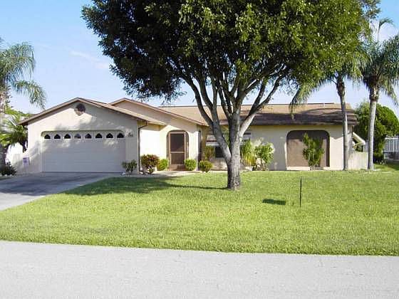 Well maintained home centrally located in Cape Coral. 3 bedroom 2 bath split floor plan with a 2 car garage. New AC. Home was repiped in 2002. Newer roof with warranty until 2019. Master bedroom is carpeted and bathroom has tiled shower. Kitchen has pass thru window out to lanai that is screened and has vinyl windows. Flower beds surround the home and are rocked and edged with cement bricks. An automatic sprinkler system keeps the Floritam grass green all year.