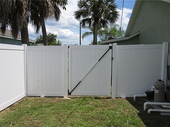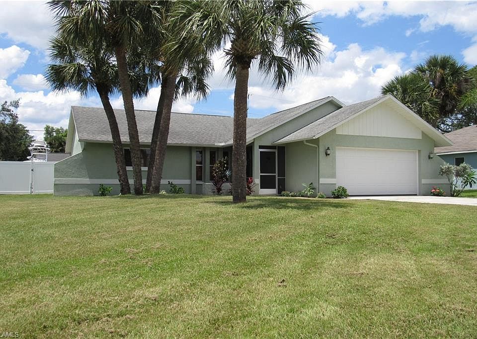 1500 Sq Ft SW Cape Coral home. Three bedroom two full bath. Nicely landscaped. Updated kitchen with granite counters and stainless steel appliances. Open floor plan with tile floors and wainscoting make for a beautiful great room. Skylights add warm, bright, natural lighting. Master bedroom has an updated master bath and neutral decor. Second and third bedrooms nicely decorated and shared by an updated guest bath. All bedrooms have stunning laminate wood flooring. Florida room features built-in cabinets and luxury vinyl plank flooring. Back yard is fenced-in for privacy with newer vinyl fencing. Double gate allows for boat parking. Covered open lanai outside perfect for entertaining. In-ground spa great for evening relaxing. Pool pump and filter already in place for future pool if desired. Great location close to Pine Island shopping corridor, BMX Park and freshwater boat launches. 10 minute drive to Matlacha. Call for your private showing today!