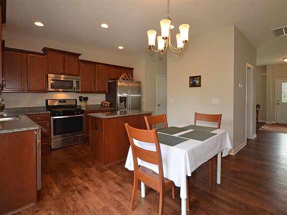 - Kitchen: Counter Tops-Granite, Eat In, Island, Cabinets-Stained, Floors-Vinyl