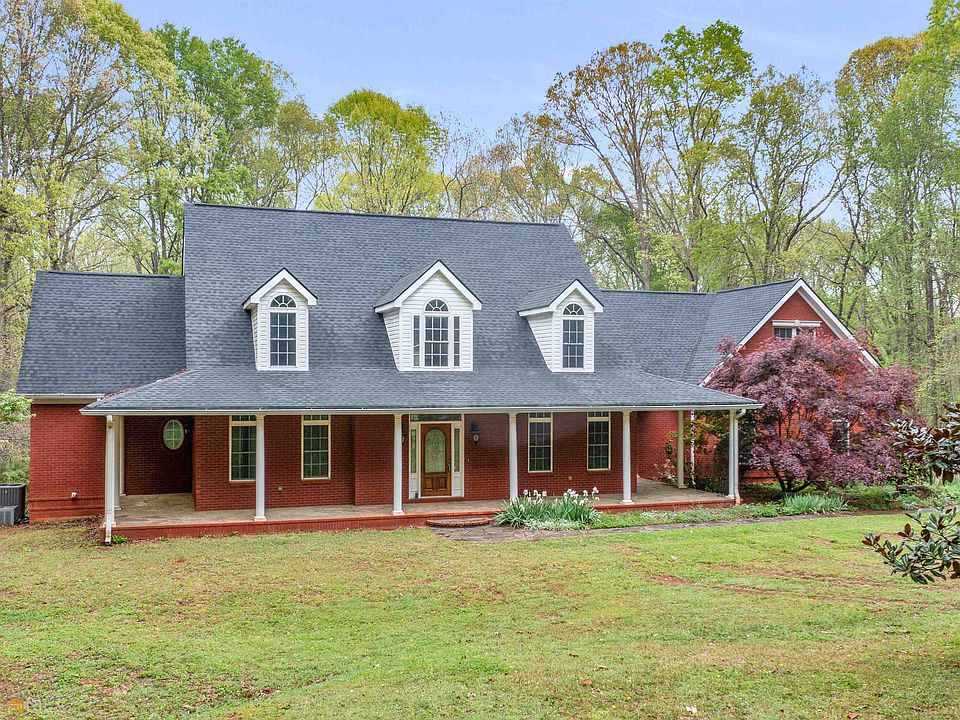Welcome home to this all brick beauty located on 8 plus acres. A gated private drive leads you into to this large custom built home that has room to expand. Rocking chair front porch. Upon entering there is a two story foyer. Very large Great room with built ins and floor to ceiling stack stone fireplace. French doors that lead to the covered back porch and gorgeous windows across back of the home. Formal Dining room that sits 12 plus people. This home offers hardwood floors throughout. Tile in the bathrooms. Owners suite is more than adequate with a sitting area and a door leading to a covered porch that stretches across most of the house where you can enjoy peace and quiet and nature at its best. Beautiful mature landscaping. Walk in closet with custom built ins. Bathroom has separate shower and tub with dual vanities. A Kitchen any cook would love with a breakfast nook. Large island with a breakfast bar .Tons of cabinets for storage, custom tile . Mud room . Three additional bedrooms or an office. Large bonus room with private entrance. All this and a full basement stubbed with a bathroom. Pole barn. I could go on and on . Seeing is believing this home. Call today before this one gets away.