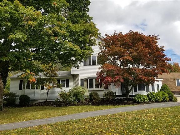 Colonial Farmhouse with 4 BAY GARAGE, 5 Bedrooms and 4.1 baths situated on 33.94 beautifully, manicured grounds and farm land. A distinguished post and beam barn greets you with a smiley face on the silo. The barn is in exceptional condition & has horse stalls. The property has facilities for 10 heated dog kennels with individual runs and is conveniently attached to the house and garage. This house does not lack room for a home office or work shop areas. The separate living quarters over the garage offers a gracious living room with fireplace and balcony looking out at a pond with a fountain and all types of wildlife. There is also a 25x50 in ground swimming pool. The estate is truly a unique homestead with much privacy and endless possibilities.