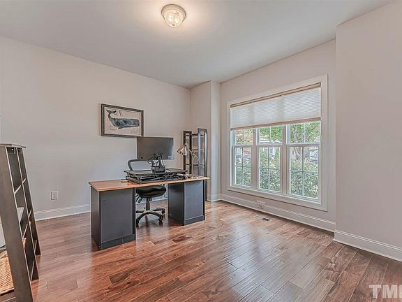 Stunning home in highly sought after Renaissance Park, minutes to downtown Raleigh. Downstairs open floor plan includes high ceilings, immaculate kitchen with granite counters, SS appliances, gas cooktop, and gorgeous backsplash. Beautiful hardwoods throughout entire home. Enjoy the large patio for entertaining, or just relaxing. Neighborhood amenities include - pool/tennis/volleyball/gym! Take a look, fall in love, and make this your home!