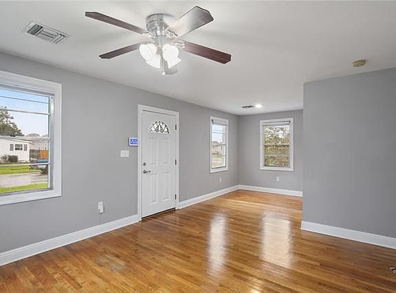 Precious Cottage in established neighborhood w/ covered wood side porch for enjoying a cup of coffee! 3 bedrooms, 1 bathroom,X Flood Zone,Freshly painted exterior and interior,Original hardwood floors, Security System w/ Cameras, Central A/C& Heat,Interior Laundry(hookups in one of the bedrooms),Fully functional 15 x 13 front shed with concrete slab w/ washer and dryer hookups for optional exterior laundry and electrical run throughout,16' x 12' storage loft style shed less than 3 years old.Large Backyard