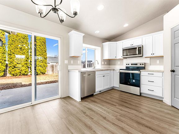 CHARMING Caldwell home with FLEX room, extra large patio and recent upgrades! Welcome to this beautifully updated 3 bedroom, 2 bathroom home, plus a versatile flex space - ideal for a playroom, game room, home office, gym or guest room. (Could be a 4th bedroom, just needs a closet.) Recent updates include new laminate flooring throughout, lighting, appliances, and fresh interior & exterior paint- which give the home a modern, move-in-ready feel! Step outside onto the extra-large patio- perfect for entertaining or unwinding. Whether you're a first time home buyer or looking to downsize, this home is conveniently located near shopping, dining and every day essentials! Don't miss out on this home!
