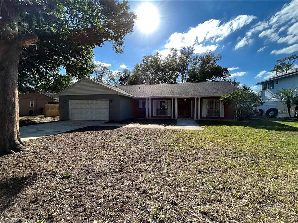 Gather your design ideas and make this home your own in desirable Sleepy Harbour community. Spacious 4-bedroom, 2-bathroom home with a pool! As you enter the foyer, you will find a living room that flows into the dining room with high ceilings and natural light. The Kitchen and family room combo are situated in the back of the home and overlook the back yard, creating a great area for entertaining friends and family. The primary suite is well sized with a walk in closet and en-suite bathroom. There are 3 additional guest bedrooms and one additional bathroom with dual sinks a tub/shower combo. To the back of the home, sliding glass doors lead you to a large screened in porch, generous pool with new equipment and back yard area with mature landscaping. New fencing has been added on either side of the home. You will also find a dedicated laundry room and a 2 car garage. The roof has been permitted and replaced in 2019. You will enjoy a low cost HOA with private access to Stark Lake, and a community park and pavilion. Great location close to schools, restaurants, shops. Minutes away from the 429, turnpike and 408. Cash Only.