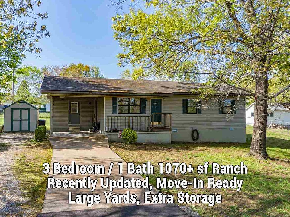 OPEN, SPACIOUS FEEL, 3 BEDROOM, 1 BATH, 1070+ sf RANCH, MOVE-IN READY, BEAUTIFUL SHADED LOT, EXTRA STORAGE, PLENTY OF PARKING. Recently updated, tastefully decorated, carefully maintained, clean and inviting, this comfortable home is ready for you. Open living and dining areas, convenient kitchen, plenty of space for friends, family, entertaining. 3rd bedroom now used as a den, could also be craft or hoppy room. Laundry/utility room has plenty of room for working, plenty of storage too. Just outside, the separate storage shed adds even more storage. Peaceful neighborhood. Broadband Internet, cable TV available. Near shopping, restaurants, businesses, medical. Minutes to White River access, fishing, water sports, hiking, hunting. Only a few miles from famous Cotter, AR, known as the "Trout Capital of the U.S.A.".