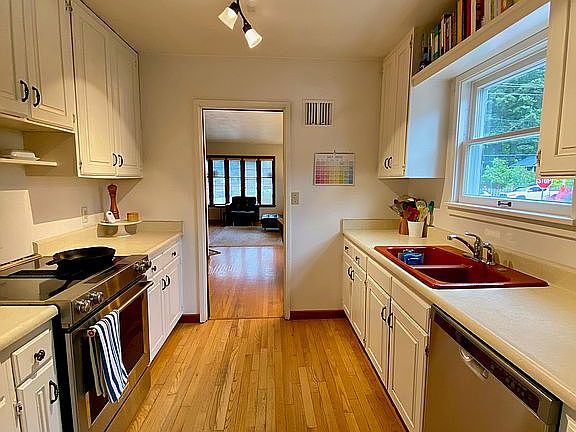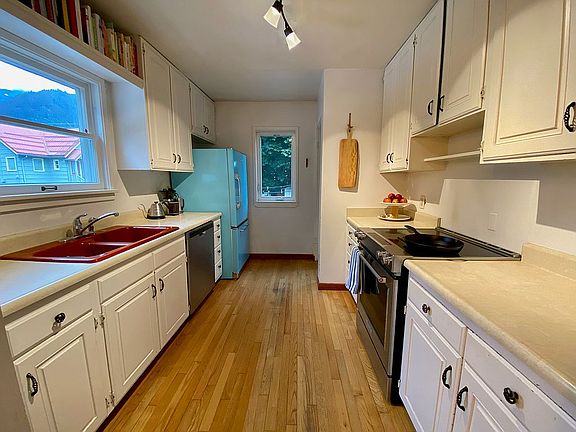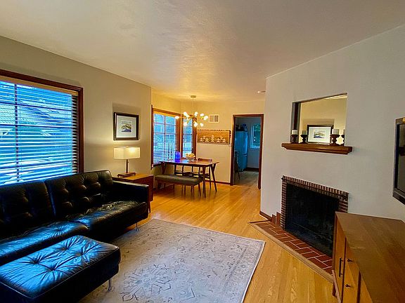 This classic 1939 three-bedroom, two-bath craftsman still has lots of original charm, including stunning hardwood floors, cool built-ins (desk and glass-doored China cabinet), and a functional fireplace. Recently updated appliances in the functional kitchen--including a fridge with mid-century stylings--are complimented by ample storage space. Lots of natural light in all directions, and great mountain views from every window. Lower-level has fully renovated bedroom suite, complete with walk-in closet, full bath, and office/living space; great teen bedroom or nursery, but could easily be converted to small apartment. Big corner lot has mature landscaping, raised garden beds, a large back patio, and fenced yard. Rare-for-downtown off-street parking could be used to stash your skiff, but the convenience to everything is what makes this Flat’s home really special. In five minutes of walking you can be to trails with your dog, your kids can be to school, and you can stop by multiple coffee shops on your way to downtown workplaces.