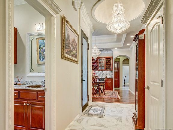 One story w/large enclosed suntoom (not in SqFt) Split bedroom. 3 bedroom plus office. Formal dining with wet bar and fridge. Full granite chef's kitchen. Garage has A/C w/a working kitchen! High end fixures. Wood/marble floors.