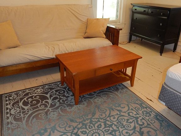 There are no shared spaces. You have your own kitchen and bath and bedroom. This is an older house divided into 5 studio apartments. Each apartment has its own kitchen and bath. The apartment is on the second floor and is nicely furnished. Tenant pays for utilities.