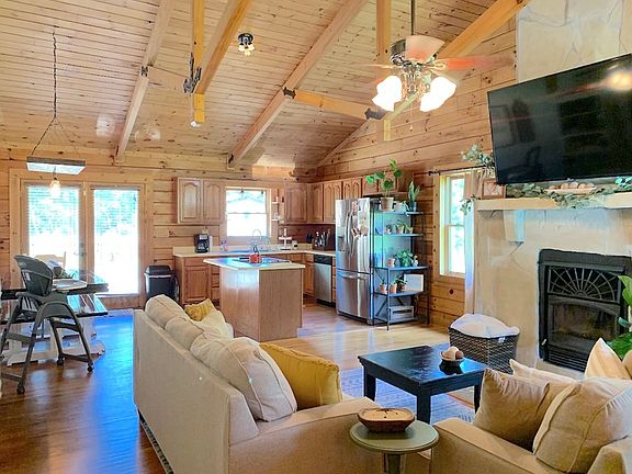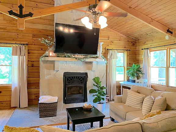 Want to have your privacy but still be close to everything? This updated log cabin sits on 6.81 acres and has your name written all over it. Whether you want to start the day with some coffee or end it by grilling out, the rocking chair front porch and large back deck provide you with great options. Walk into a spacious living room/dining room that features beautiful vaulted ceilings and a stone fireplace. With recent remodels of the master bathroom and new carpet, you are ready to move in! Did I mention that the property provides you with space for your pick of farm animals (I'm a fan of fainting goats)? The back yard also features an outdoor firepit and garden area, as well as a large barn to use for storage, as a shop, or however you prefer. Come check out your escape from the hustle and bustle!